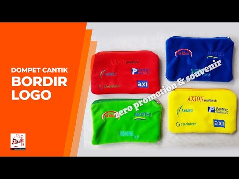 Souvenir Pouch Dompet Cantik Custom Bordir Logo elegan & multifungsi. Cocok untuk promosi, pernikahan, seminar kit. Harga murah berkualitas!