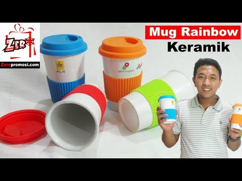 Detail Souvenir Mug Keramik Rainbow Silicone With Tutup